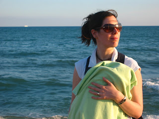 This was Anselm's firs time at the beach (I don't think accompanying us to a beach-side "chiringuito" counts). And while it was October, the late afternoon sun was still warm enough to counter the soft wind that sent waves curling up the sand toward us.